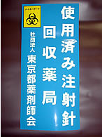 当管理センター管内の画像の看板を掲げている薬局では、 薬局が交付した注射器・注射針を回収するシステムを採用しています。 費用はかかりません。